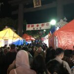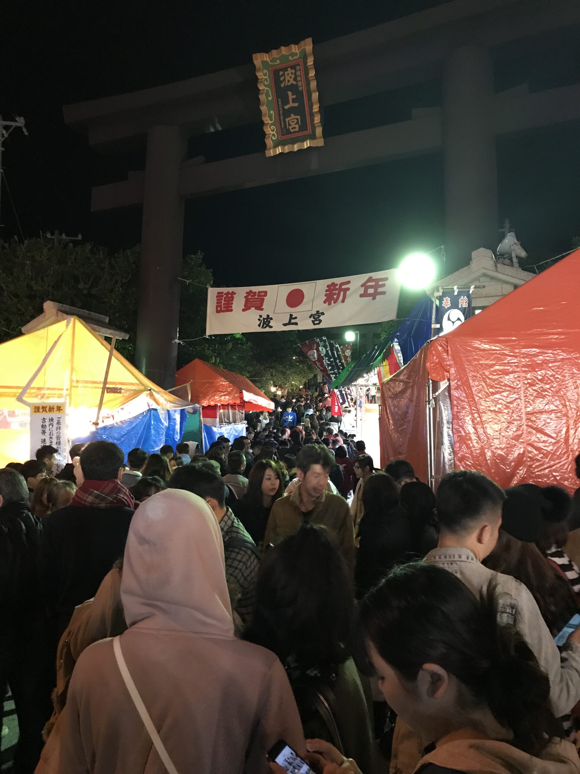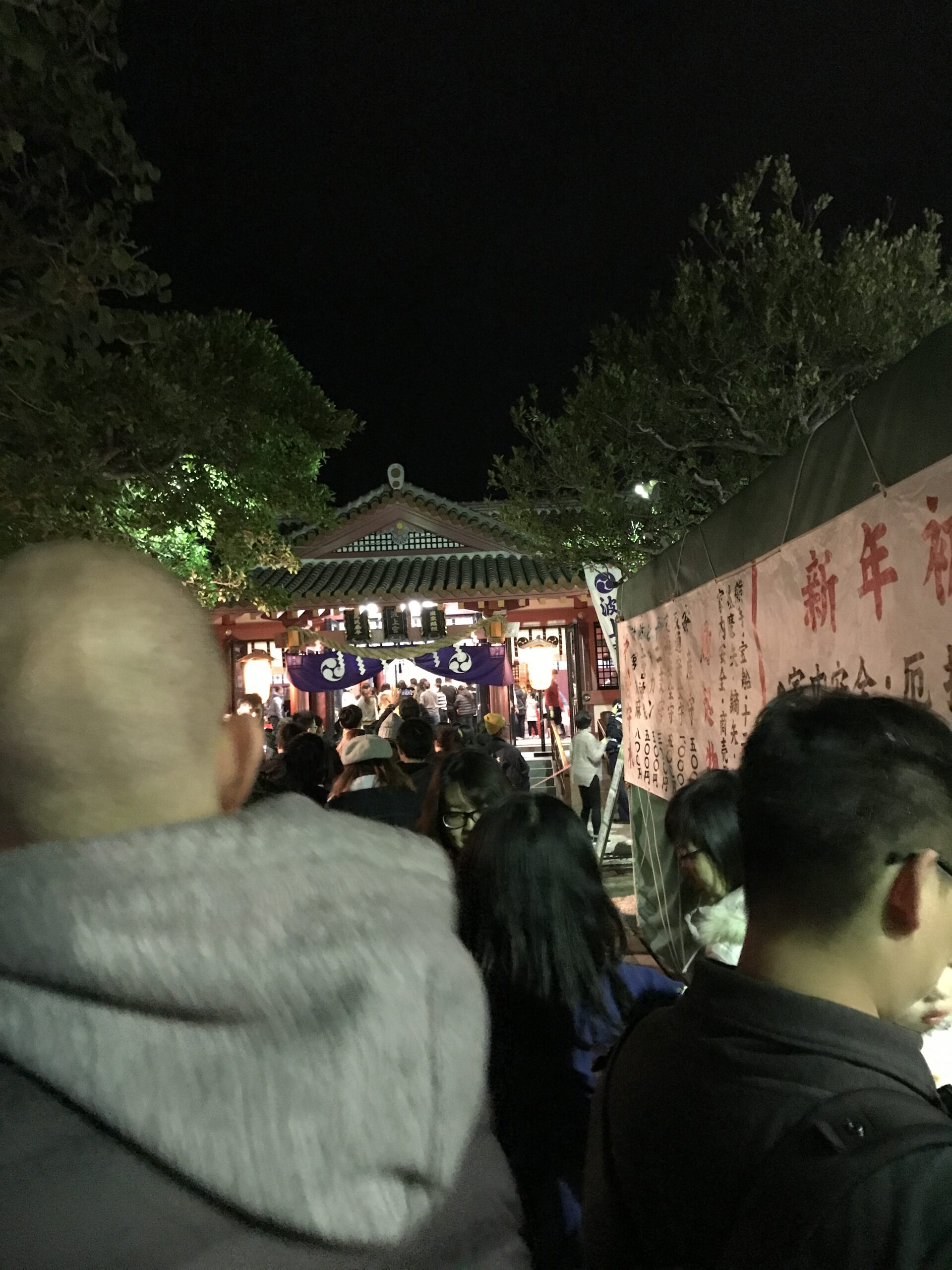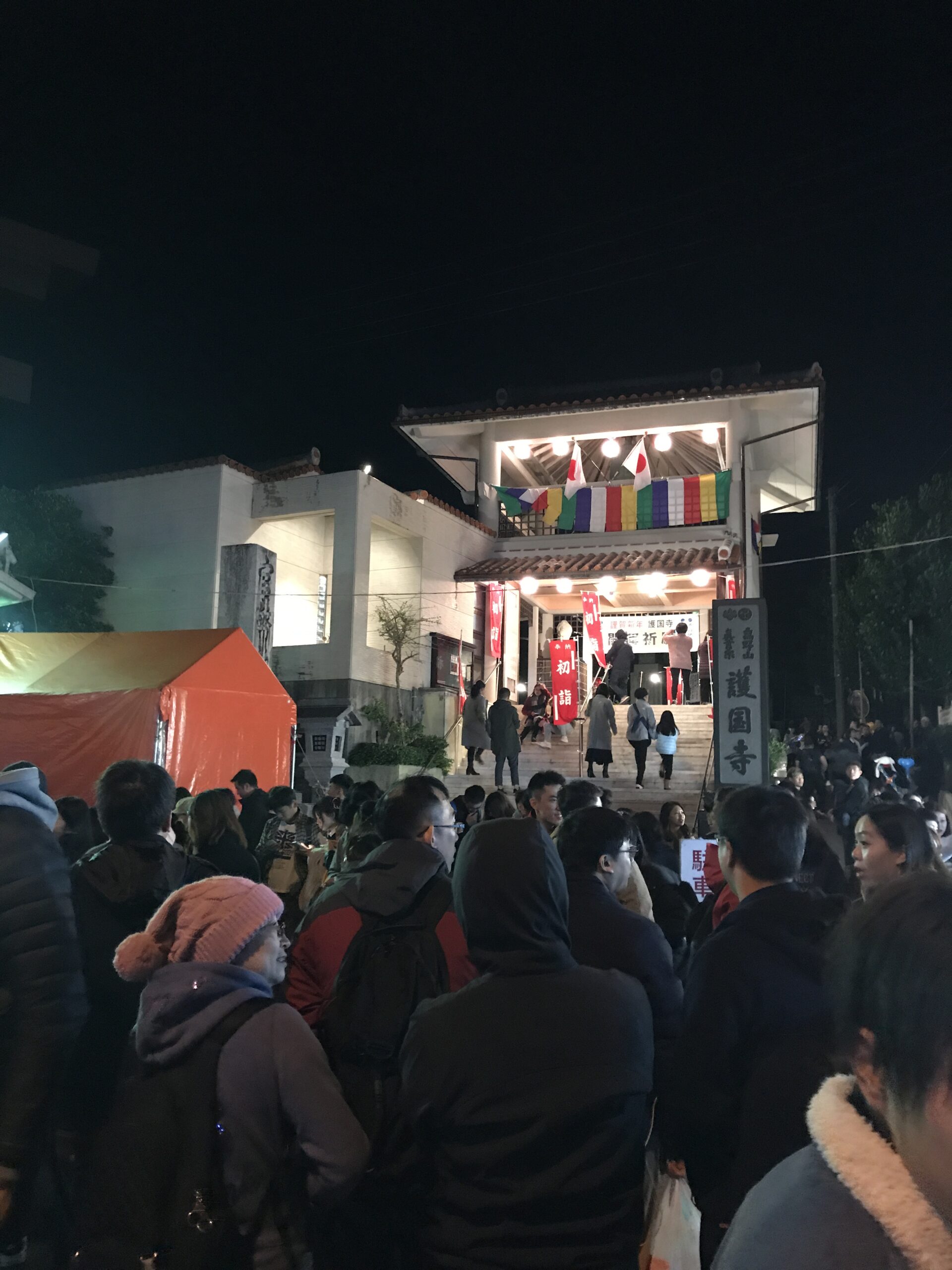 Le 31 décembre au soir nous étions à la GuestHouse entrain de diner puis nous nous sommes dit pourquoi ne pas aller tous ensemble prier dans un temple pour le nouvel an, puisque c’est une tradition au Japon. Ni une ni deux nous voici en route et c’était comme chaque année bondée de monde, voyez plutôt.