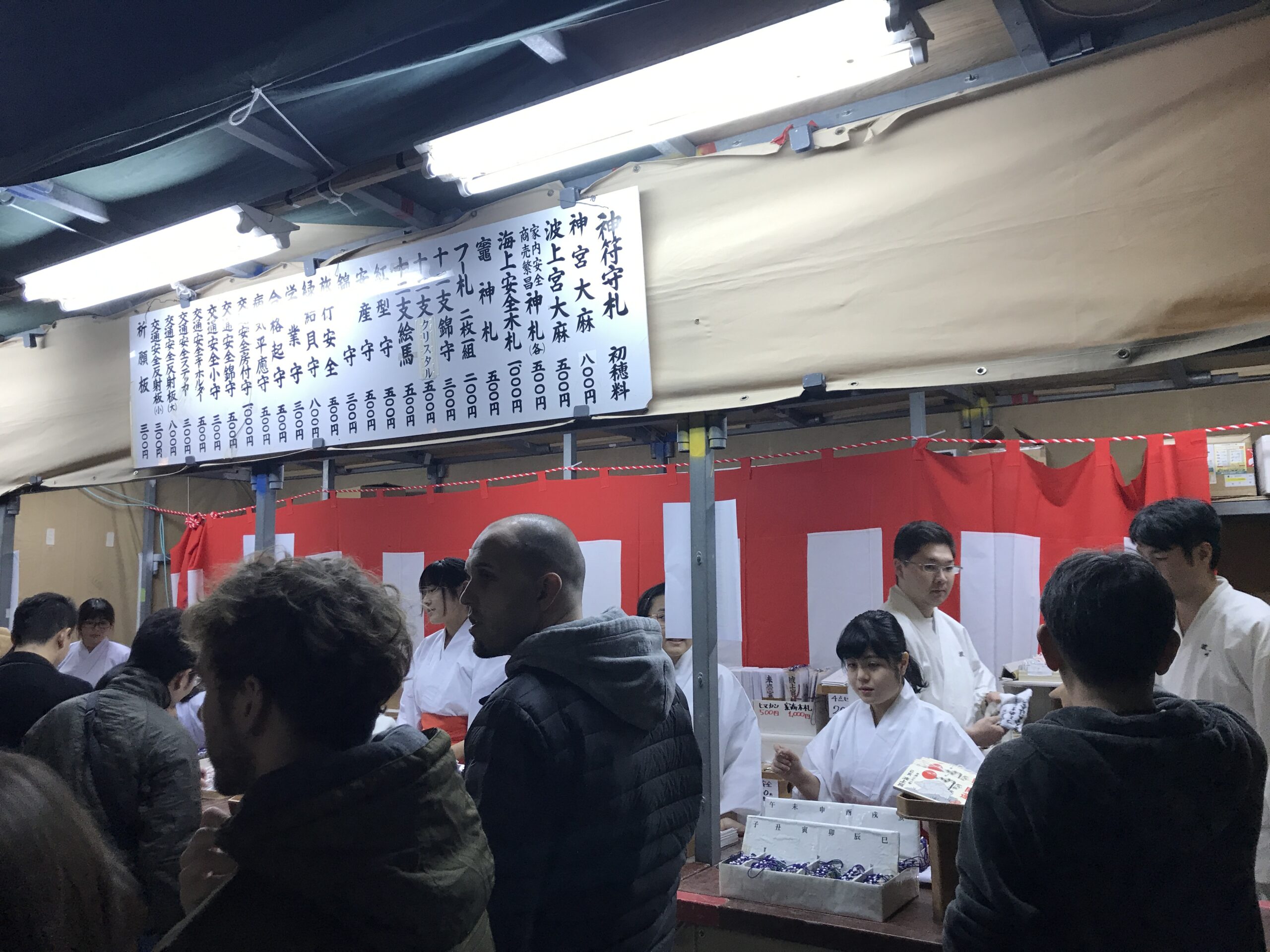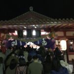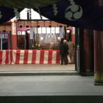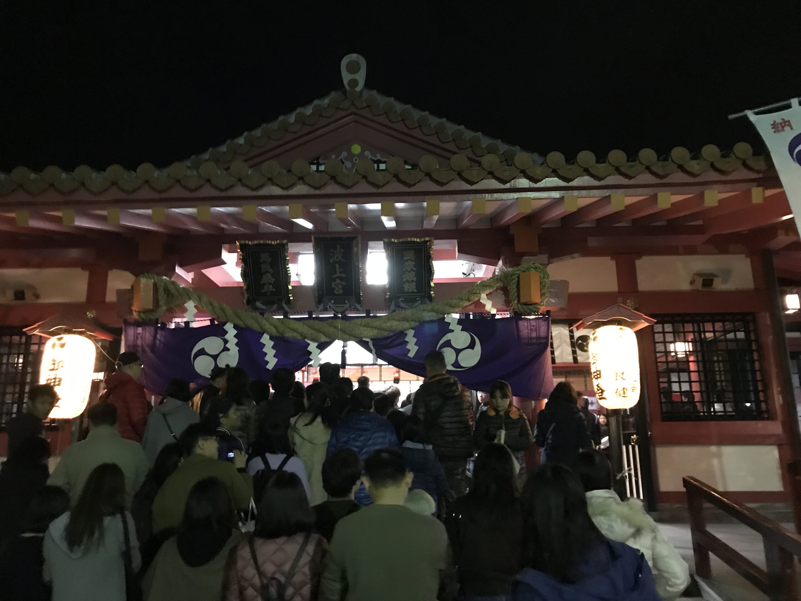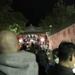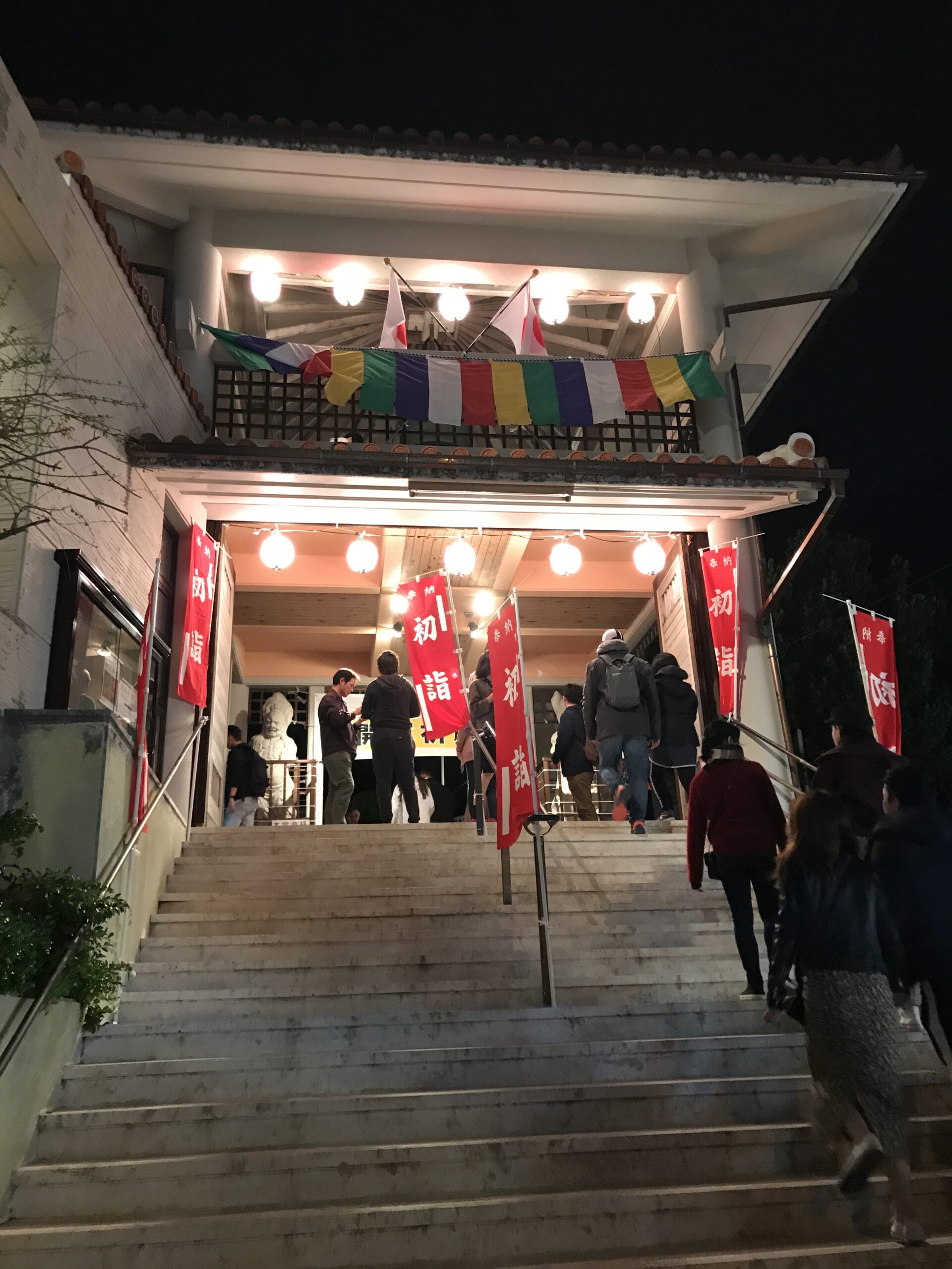 Le 31 décembre au soir nous étions à la GuestHouse entrain de diner puis nous nous sommes dit pourquoi ne pas aller tous ensemble prier dans un temple pour le nouvel an, puisque c’est une tradition au Japon. Ni une ni deux nous voici en route et c’était comme chaque année bondée de monde, voyez plutôt.