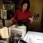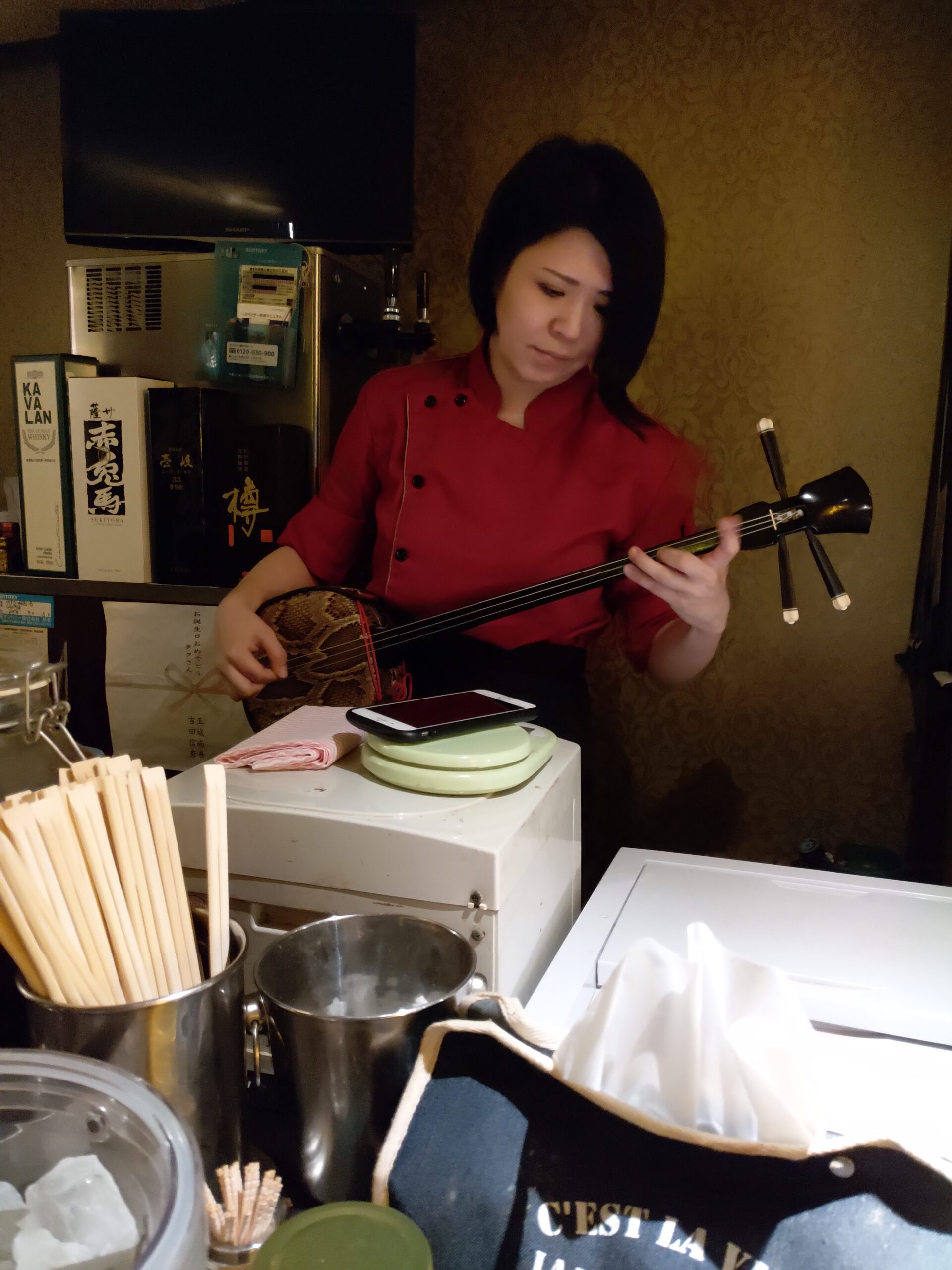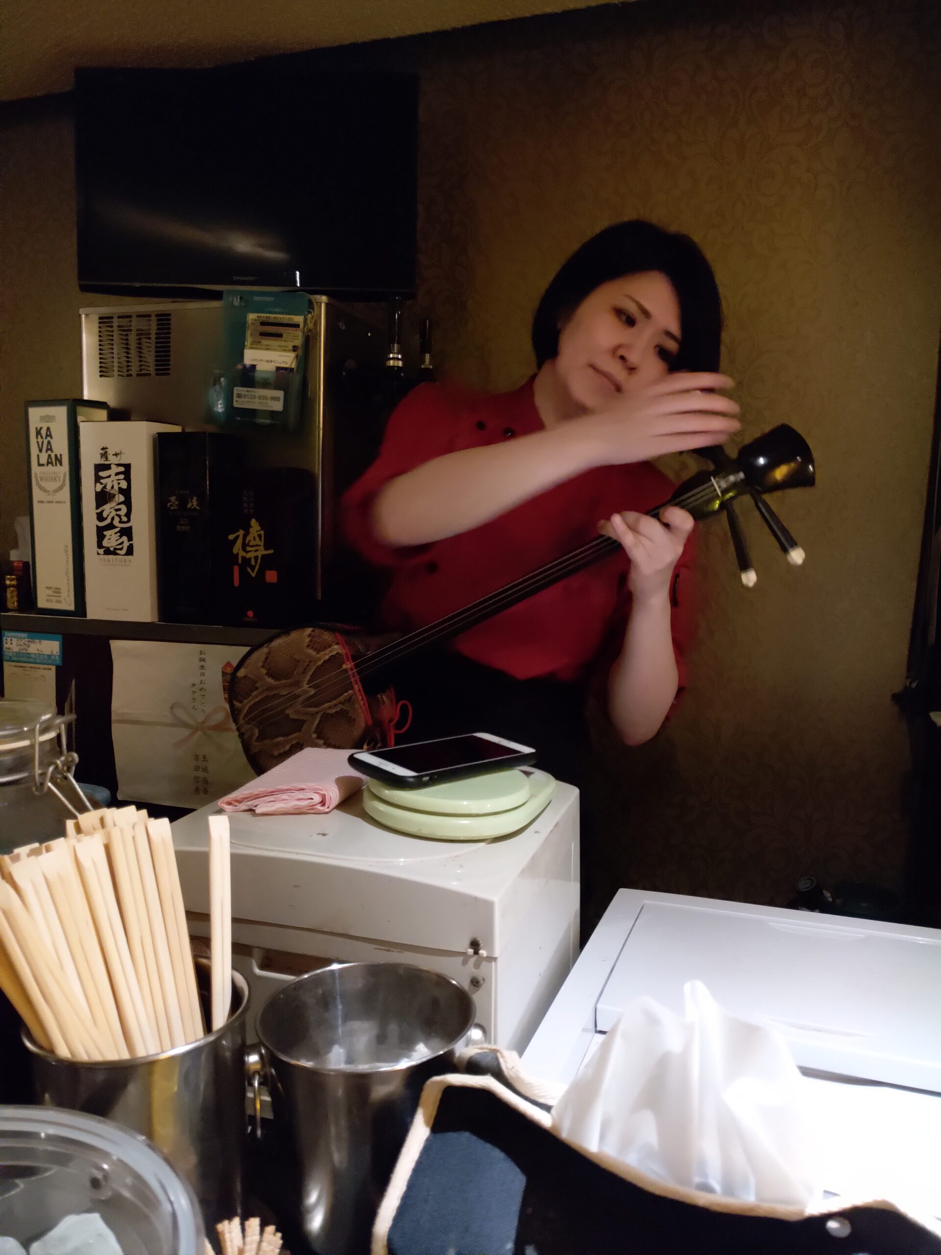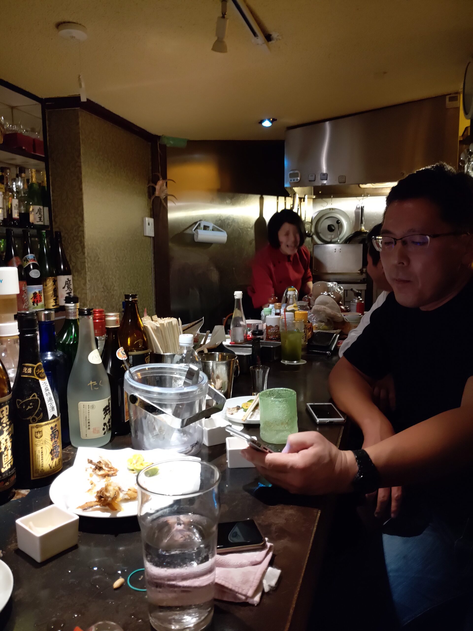 Dans une petite ruelle située derrière la GuestHouse Kerama se trouve un petit bar qui n’a aucune publicité et qui n’est indiqué nulle part. Les étrangers ne le connaissent pas, il faut vraiment être quelqu’un du coin pour savoir qu’à cet endroit précis se trouve un bar. Avec l’expérience des années je connais bien ce petit pub et sa propriétaire, j’y suis accepté alors qu’aucun gajin n’a jamais mis un pied à l’interieur.