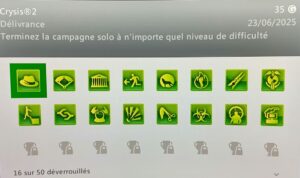 Au niveau des achievements j’ai débloqué 16/50 succès pour 315/1000G, ce qui est pas mal pour une première partie. A voir si un jour j’en recommence une seconde dans un plus haut niveau de difficulté pour m’approcher un plus plus des 1000G. Mais vu le temps qu’il m’a fallu pour finir le jeu une première fois ce ne sera pas pour demain.