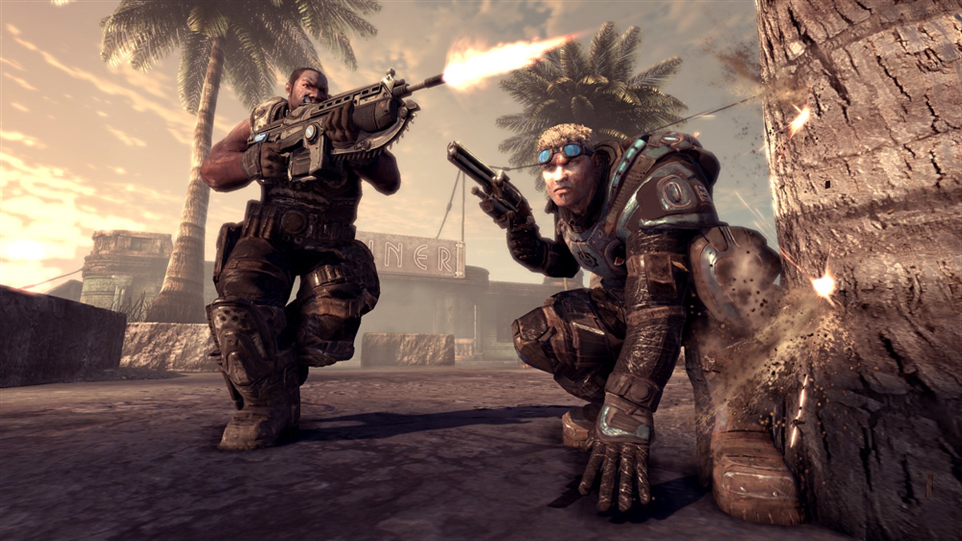 Nous incarnons Marcus Fenix, un soldat mis aux arrêts pour avoir désobéi aux ordres, et que son ami Dominic Santiago libère de prison dès le début de l’aventure. Ses compagnons, Marcus ne les lâche quasiment jamais au cours du jeu, ce qui oriente le jeu vers la coopération, que ce soit avec l’IA, ou avec un ami lors de la campagne.