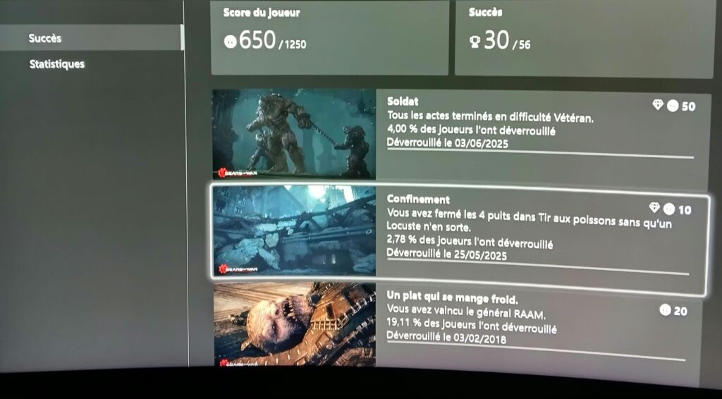 650/1250G pour un total de 30/56 Succès.