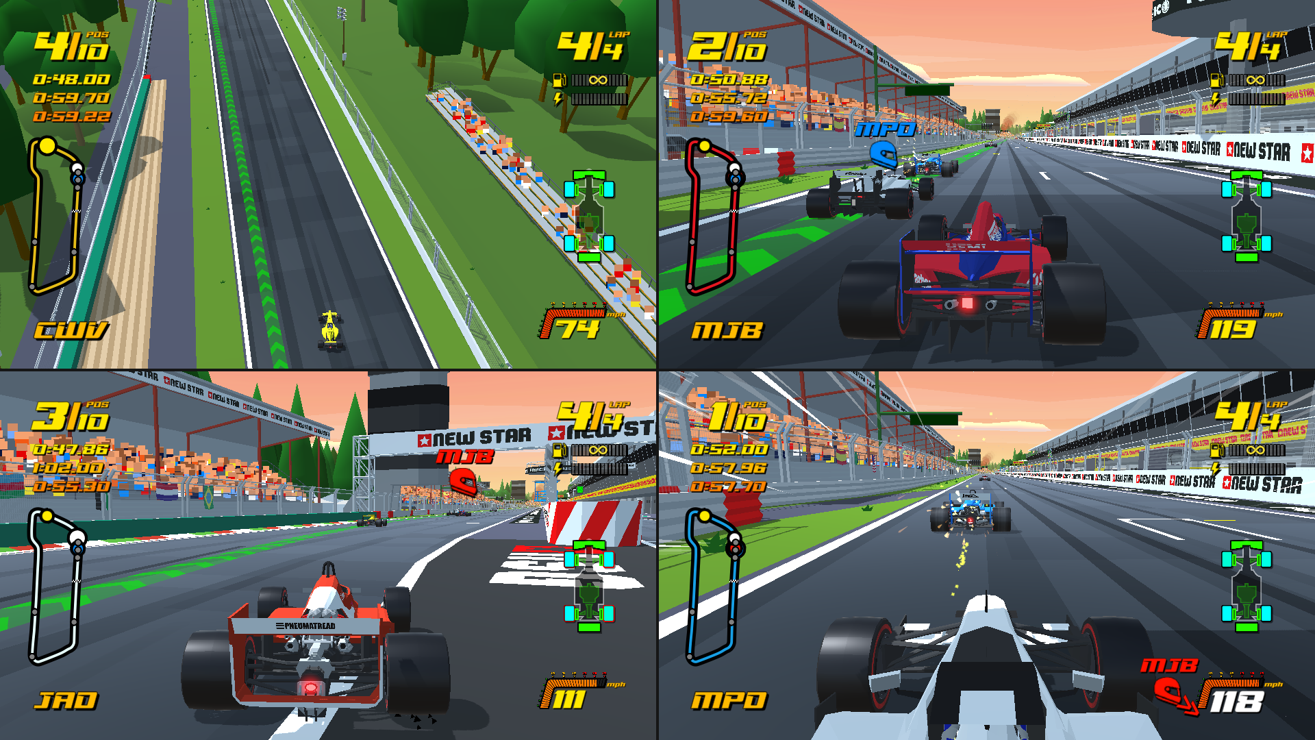 En plus du solo, New Star GP propose un mode multijoueur en écran partagé, permettant jusqu’à deux joueurs, et non quatre malheureusement, de s’affronter sur des championnats personnalisés. Nous pouvons également jouer seul contre la console.