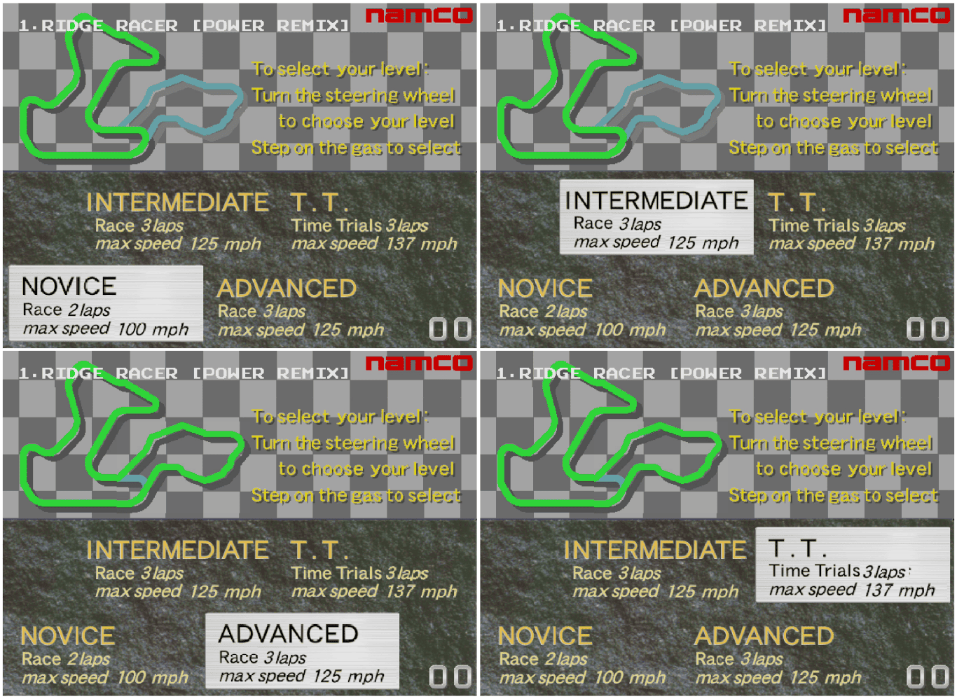 Pour l’instant j’ai du mal à faire de bons scores, je maîtrise pas assez bien le jeu pour savoir si il y a le fameux véhicule Devil 13 à débloquer en finissant premier partout puis en le battant en terminant devant. A l’époque c’etait en quelque sorte le big boss du jeu, mais vu qu’il s’agit du portage PS1 je suppose que oui, le contraire serait étonnant.